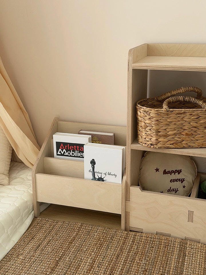 • Bookshelf or Open Cubby: Works as a mini face-out shelf or a small cubby for toys and bedtime items.